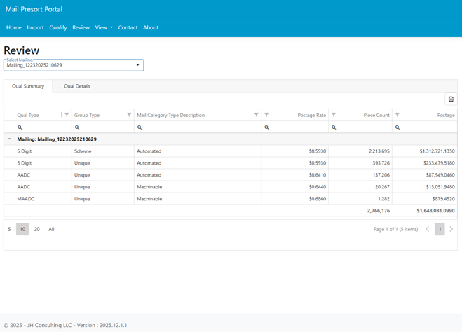 Mail Presort Portal
